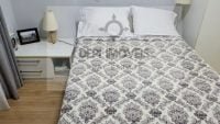O apartamento tem cerca de 48m², um quarto, cozinha integrada e varanda, e é totalmente mobiliado, com geladeira, fogão, lava e seca, micro-ondas, sofá, armários planejados, mesa, cadeiras, cama, rack, buffet, cômoda, ar condicionado, etc, conforme as fotos.
