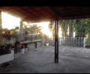 Fica numa rua sem saída local calmo sem movimentação com coqueiros plantados a frente sem vizinhos de frente.